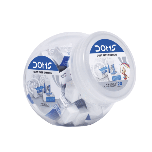 Whether for classroom learning, professional work, or creative projects, the DOMS Dust Free Eraser Jar of 20 is a must-have stationery essential that ensures precision and cleanliness every time.