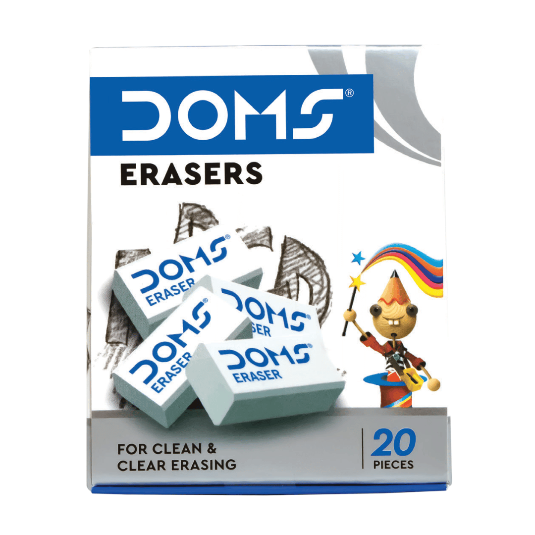 The DOMS Eraser Pack of 20 is designed to deliver smooth, clean, and effortless erasing for students, professionals, and artists. Made with soft, non-toxic, and high-quality material, these erasers ensure precision without damaging the paper surface.
