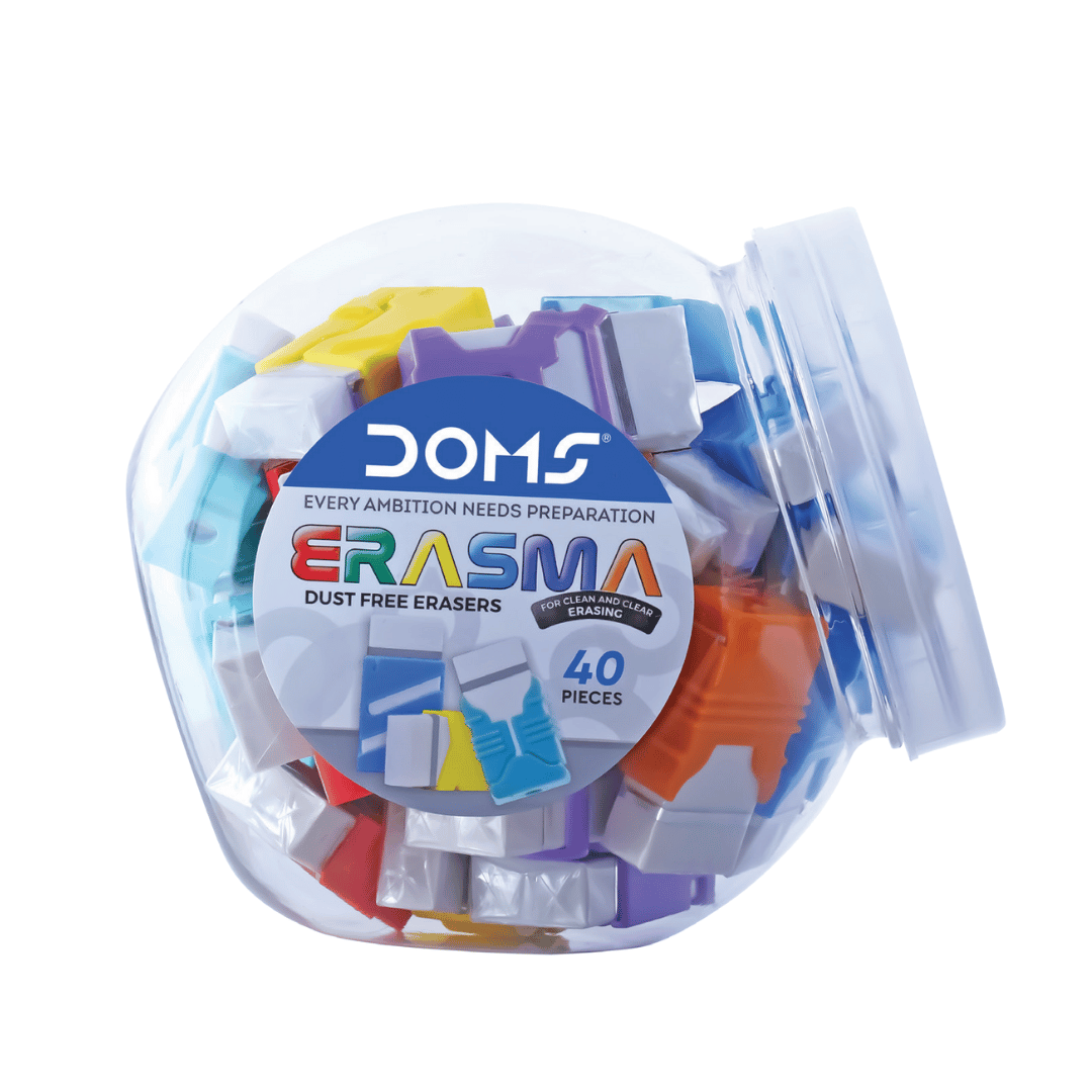 Whether it’s for schoolwork, office use, or professional art projects, DOMS Erasma Erasers deliver a smooth erasing experience with minimal pressure. Their dust-free and non-toxic formula makes them safe for kids and suitable for long-term use.