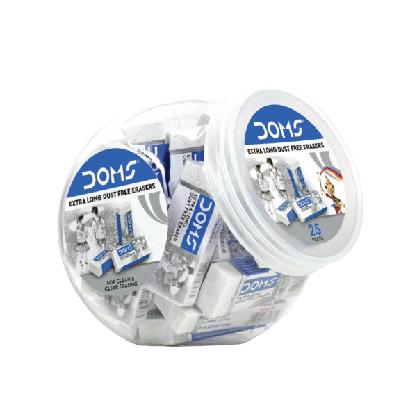 Packed in a sturdy and attractive jar of 25 erasers, this set is convenient for classrooms, stationery shops, and bulk buyers. Reliable, durable, and effective, DOMS ensures you always get the best erasing experience.