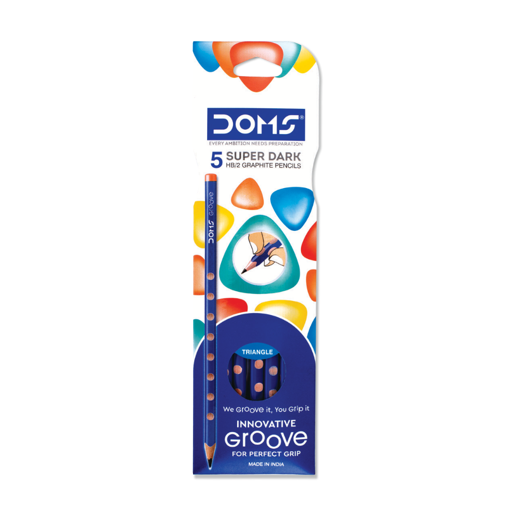 DOMS Groove Pencils – Pack of 5 | Extra Dark Graphite & Ergonomic Grip