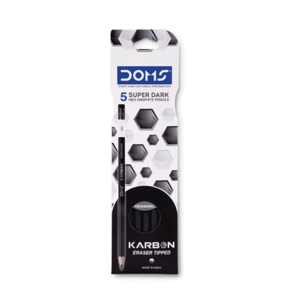 DOMS Karbon Pencils – Pack of 5 | Extra Dark Graphite & Eraser-Tipped for Smooth Writing