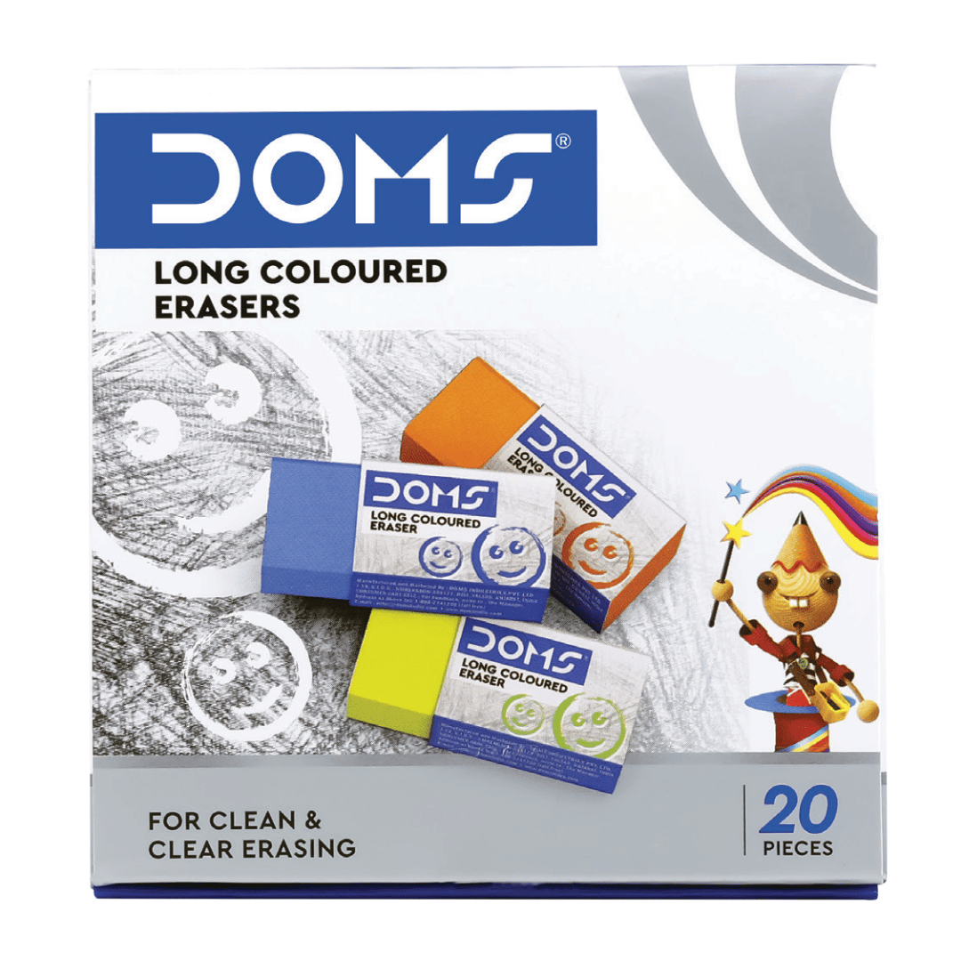 Whether for students, teachers, or stationery lovers, the DOMS Long Coloured Erasers are the perfect combination of quality, style, and reliability.