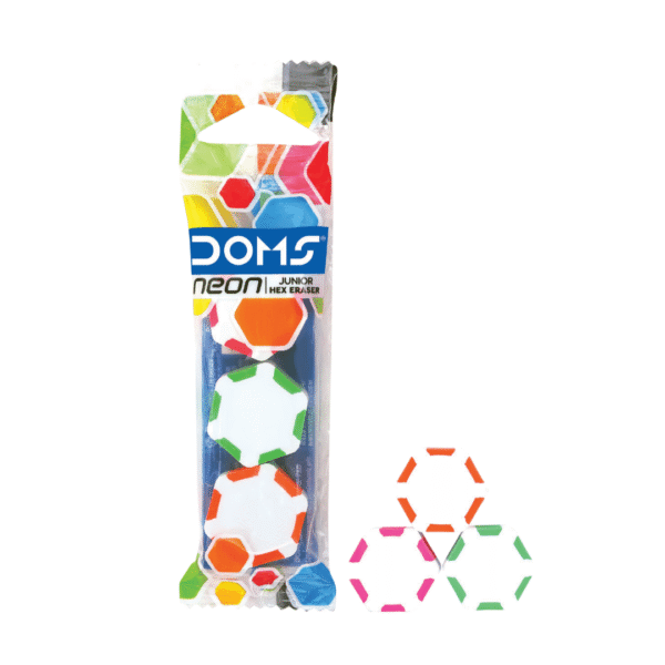 Whether for homework, exams, or artwork, the DOMS Neon Junior Hex Eraser Pack of 3 combines style, safety, and performance for a perfect erasing experience.
