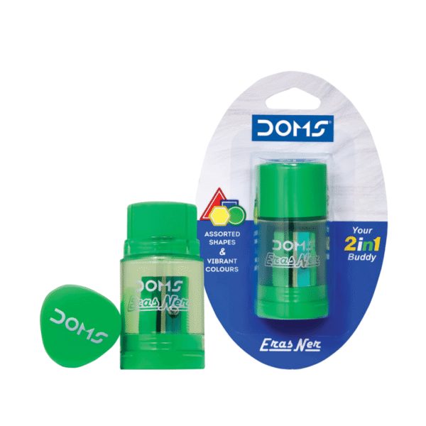 The DOMS Erasner is a smart and functional tool where “sleek design meets peak functionality”. It is an ideal tool for students and anyone who needs a convenient and efficient way to sharpen their pencils and erase mistakes.