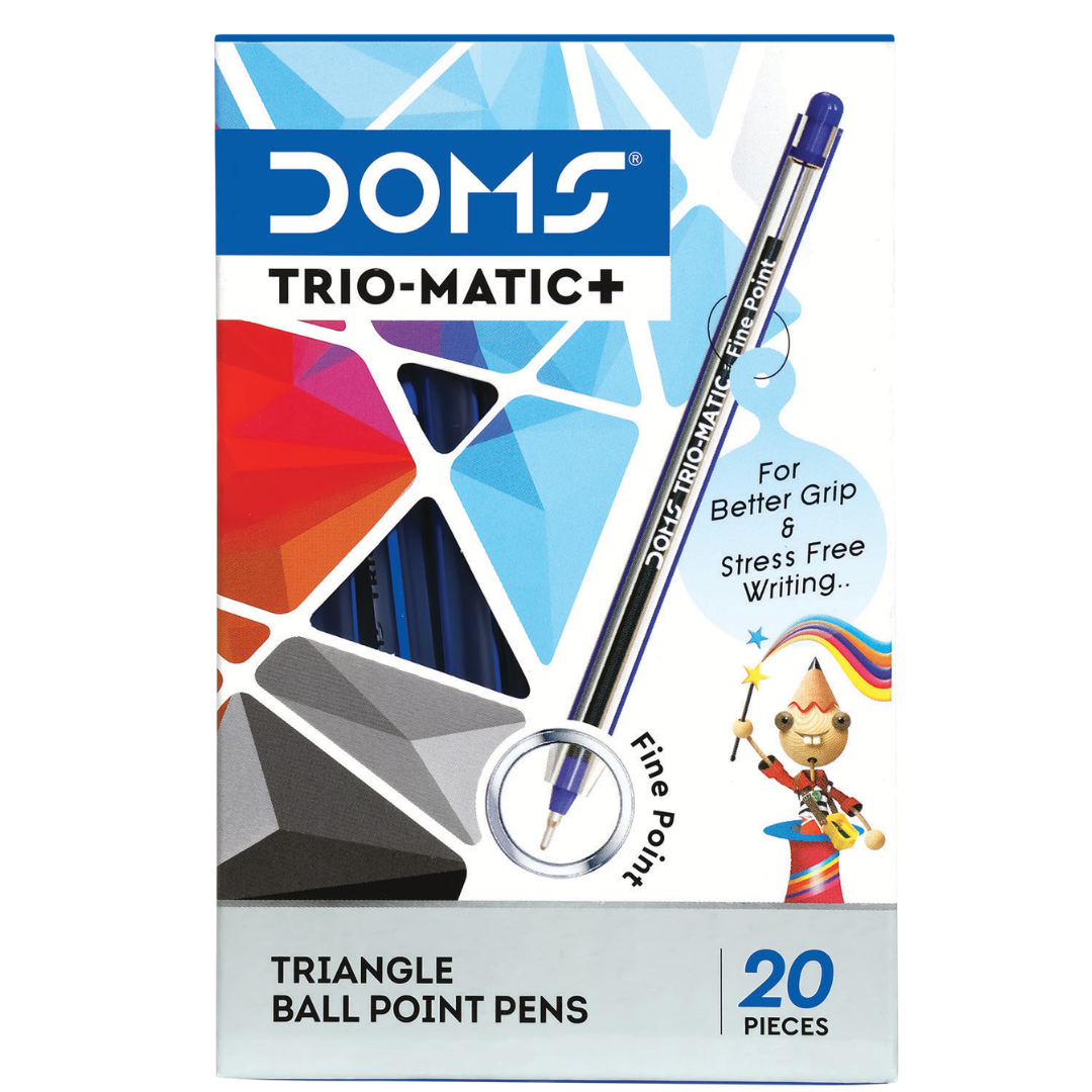 DOMS Trio-Matic+ Tringle Ballpoint Pens – Pack of 20