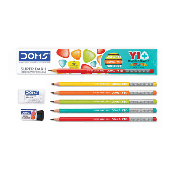 DOMS Y1+ Pencils – Pack of 10 + 1 Free Dust-Free Eraser & 1 Free Sharpener