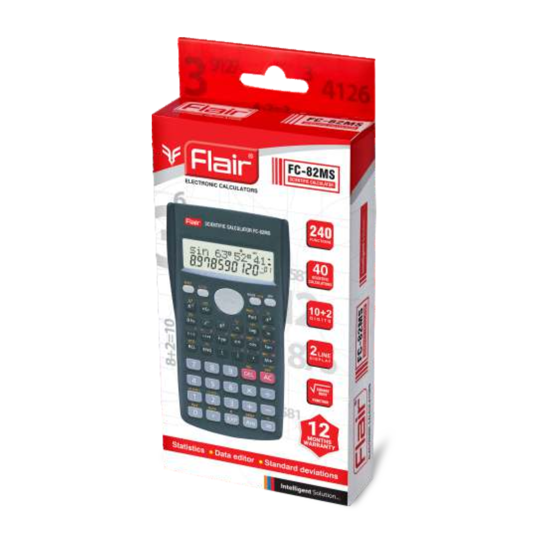 The Flair FC-82MS is a powerful scientific calculator built to handle complex mathematical, engineering, and scientific problems. Its comprehensive features and user-friendly design make it an essential tool for students and professionals.