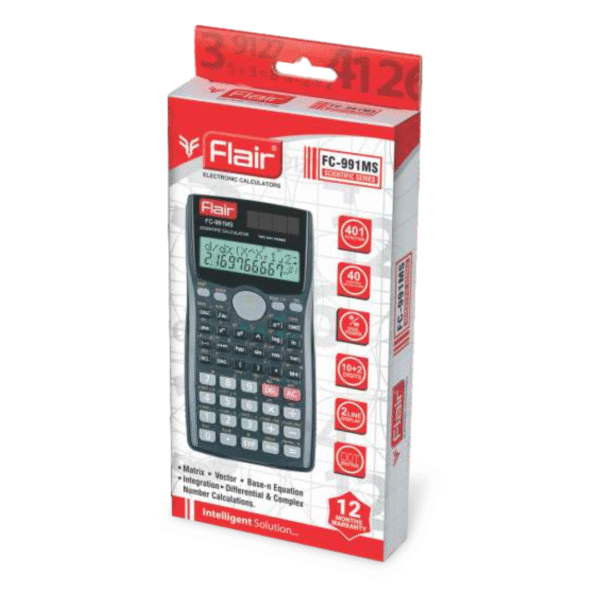 The Flair FC-991MS is a high-end scientific calculator built for advanced mathematics, engineering, and science. Its extensive functions and professional-grade features make it an essential tool for university students and professionals in technical fields.